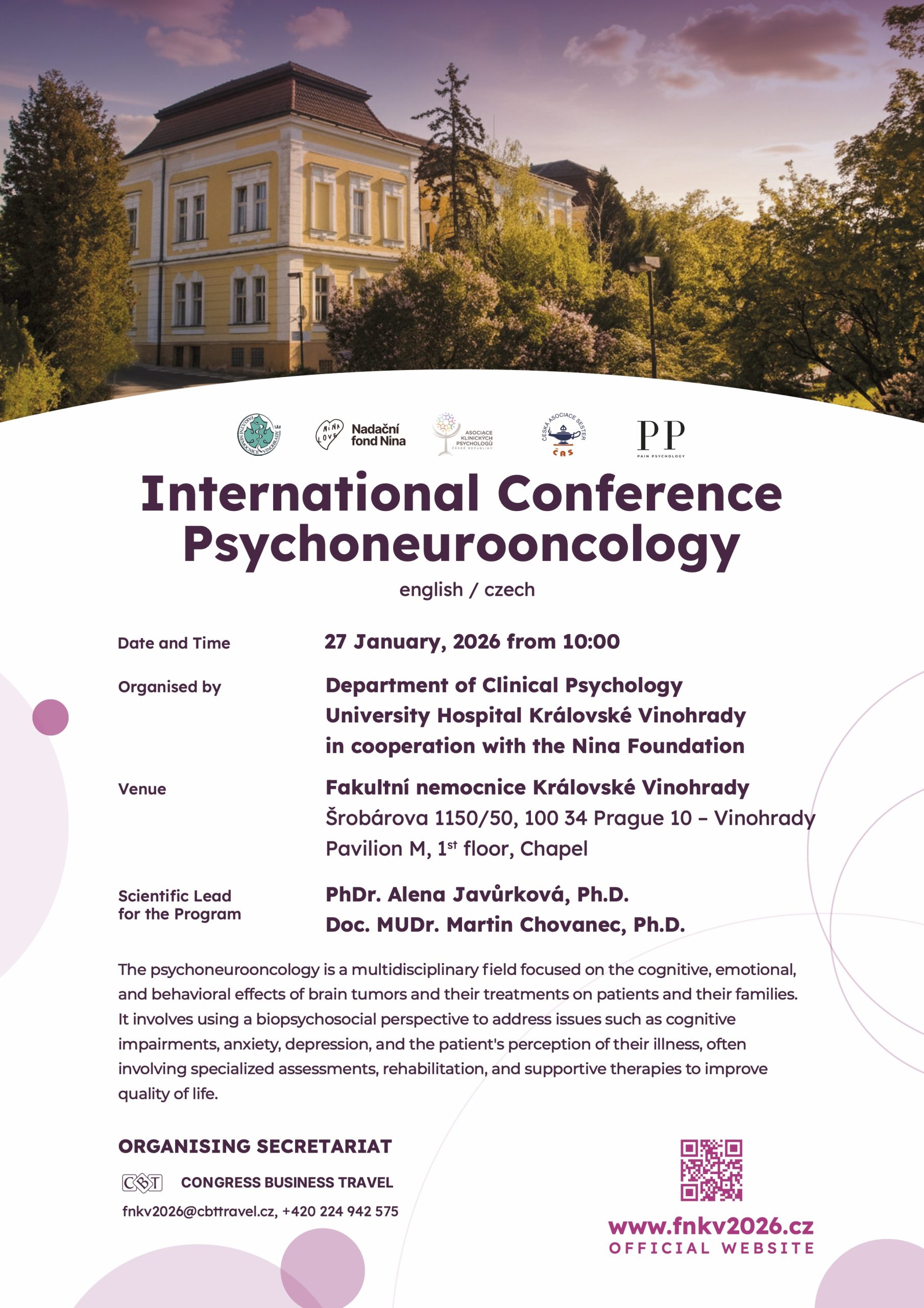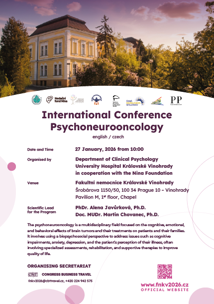Alena Javůrková presidentka kongresu, Asociace klinických psychologů ČR, Česká asociace sester, Česká lékařská komora, SSLB, ČLS JEP, Česká neurologická společnost ČLS JEP, Česká onkologická společnost ČLS JEP, Fakultní nemocnice Královské Vinohrady, Úřad vlády České republiky, Nadační fond Nina